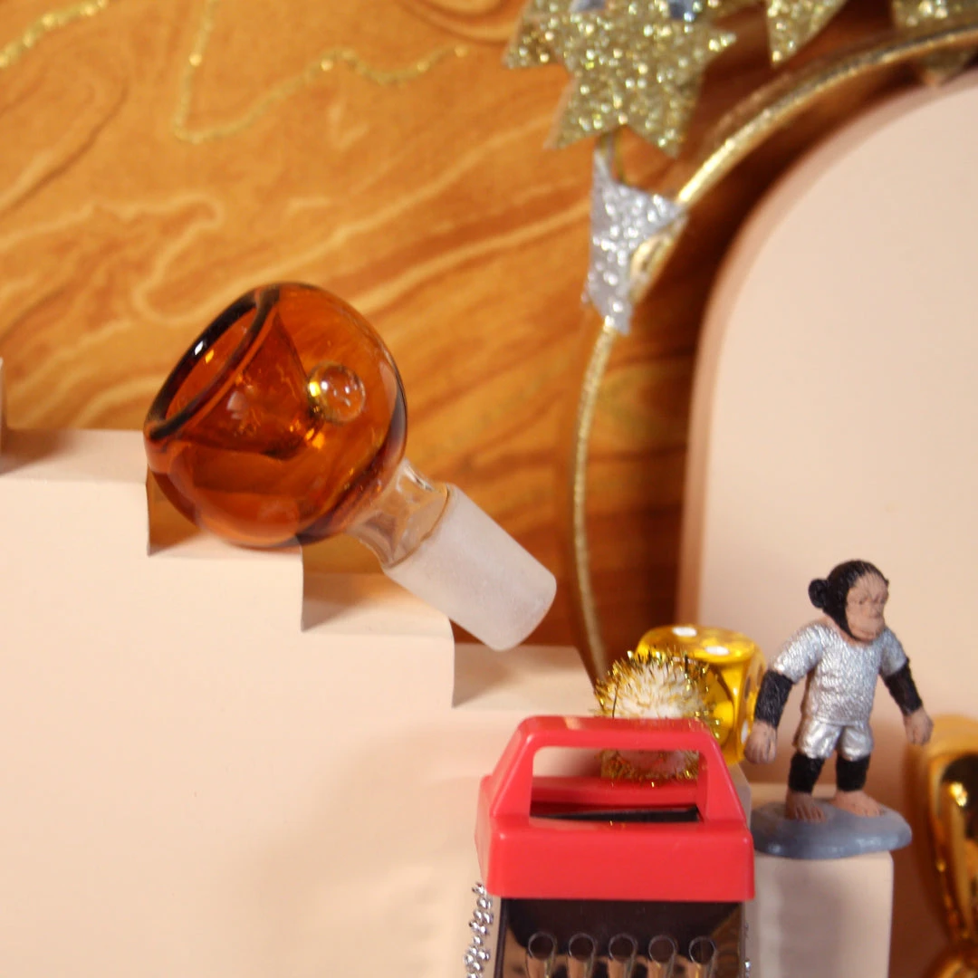 She comes with a matching 14mm bowl. It is compatible with any of the slides on our site, or you can add a banger to make this a rig!