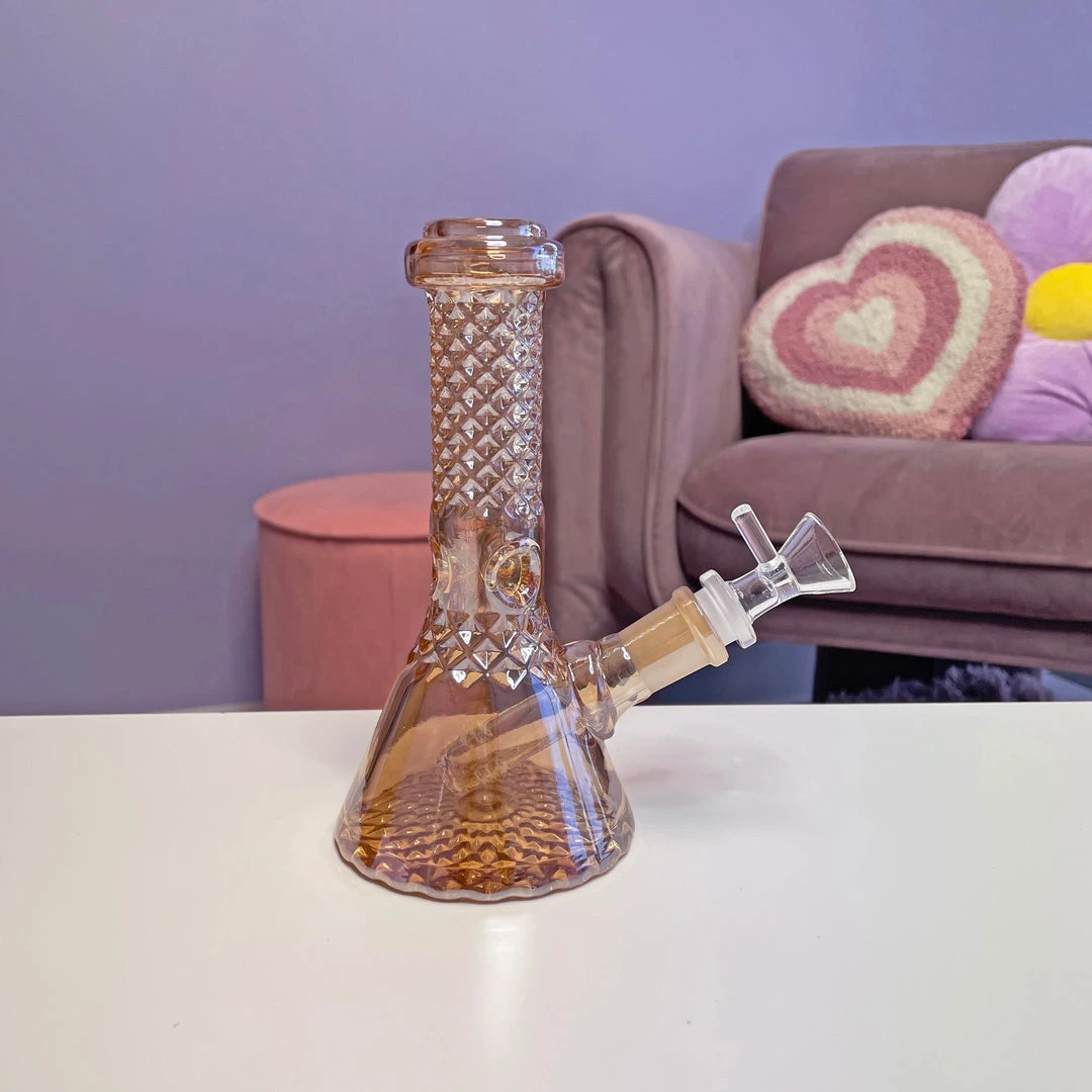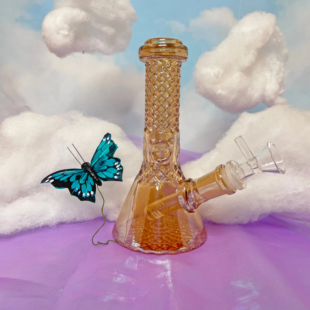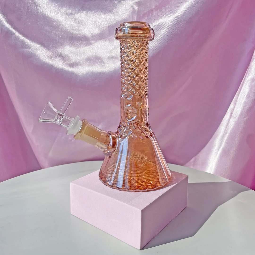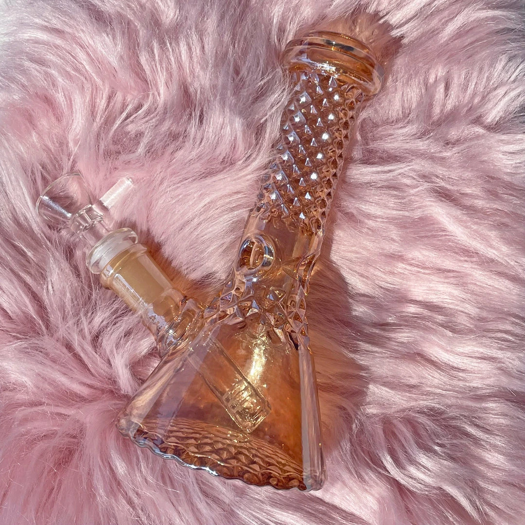 One of the most gorg pieces we’ve ever seen! This bong has that waterford crystal look all over. On top of that, she’s covered in rose gold iridescence! She even has an ice catcher!