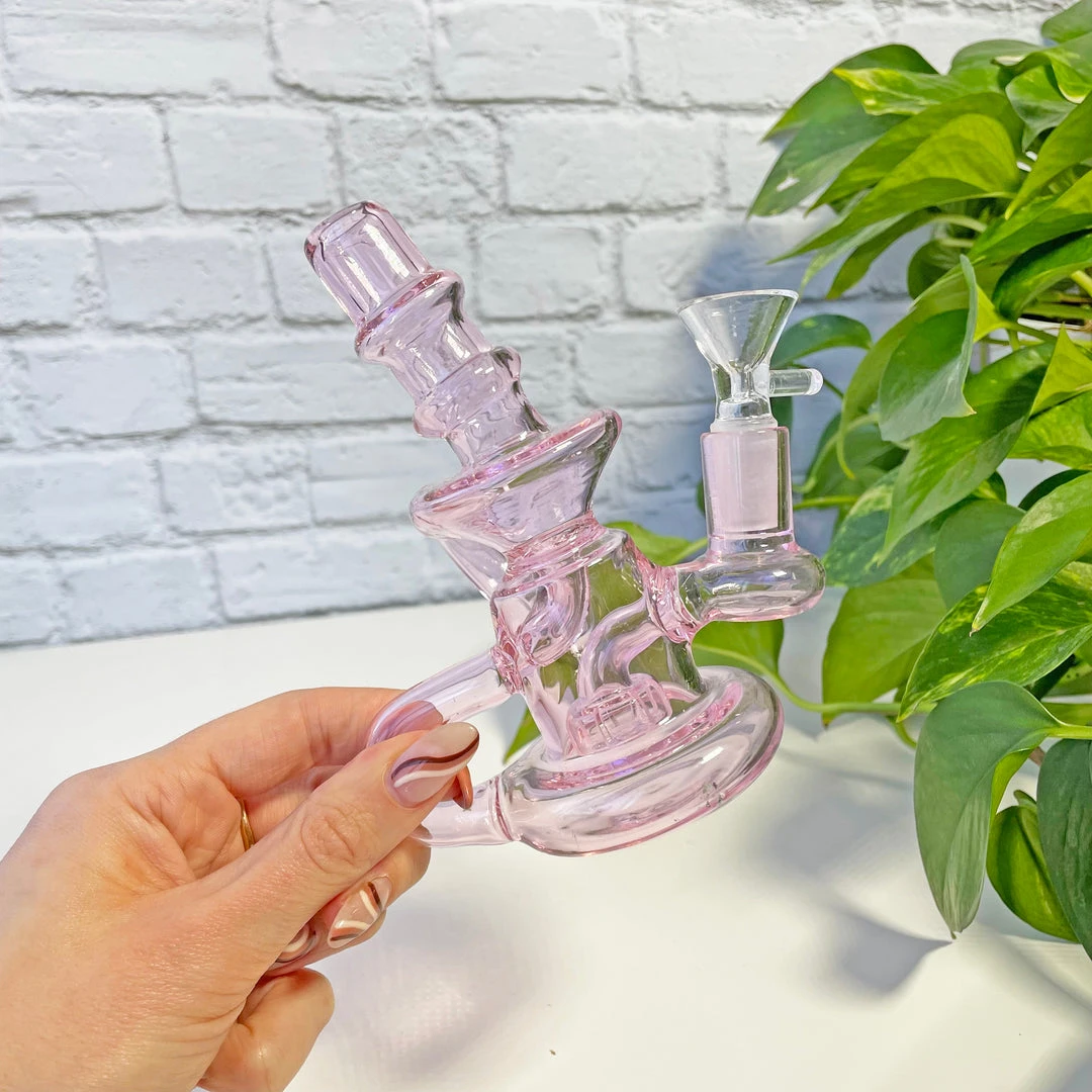 She comes with a 14mm bowl. It is compatible with any of the slides on our site, or you can add a banger to make this a rig!