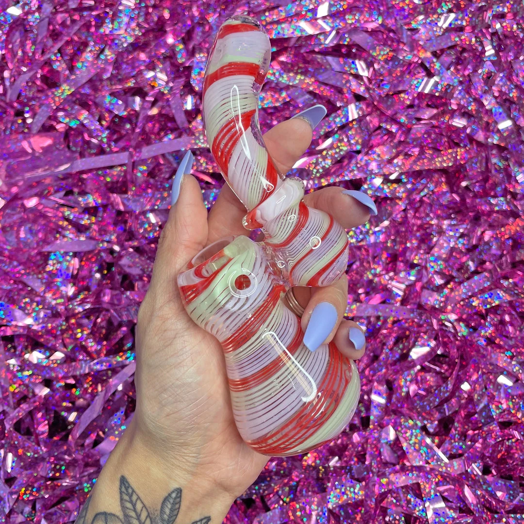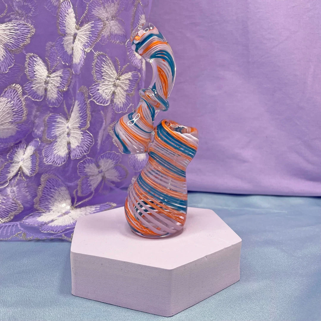 These bubblers are made of swirly striped borosilicate glass and measure approx. 6″ x 3″
