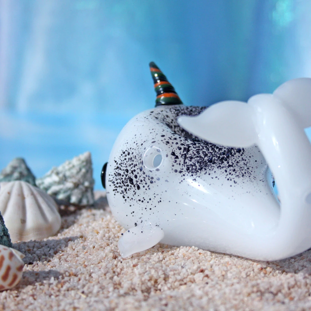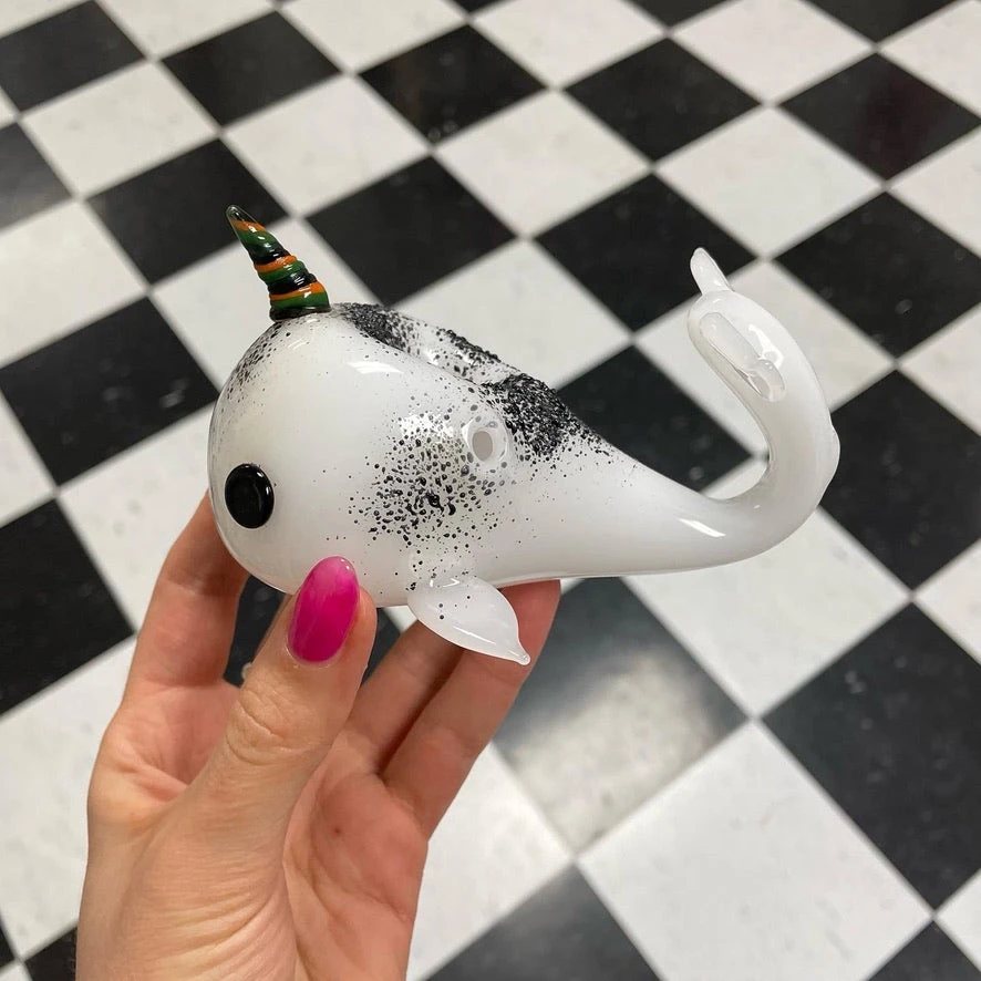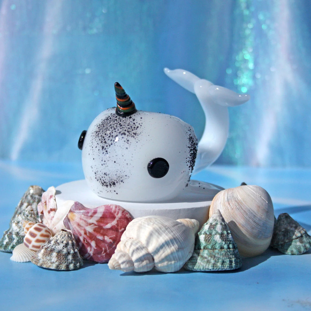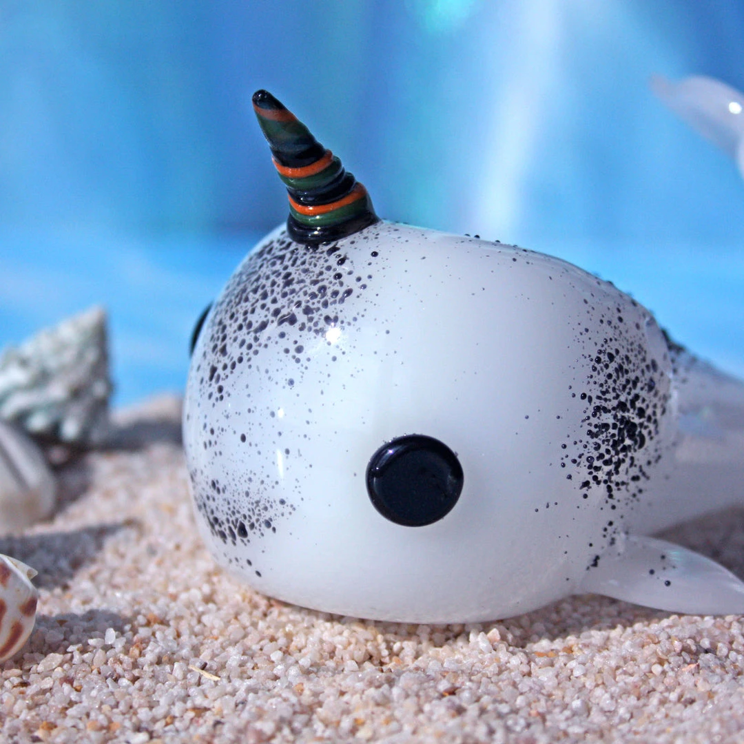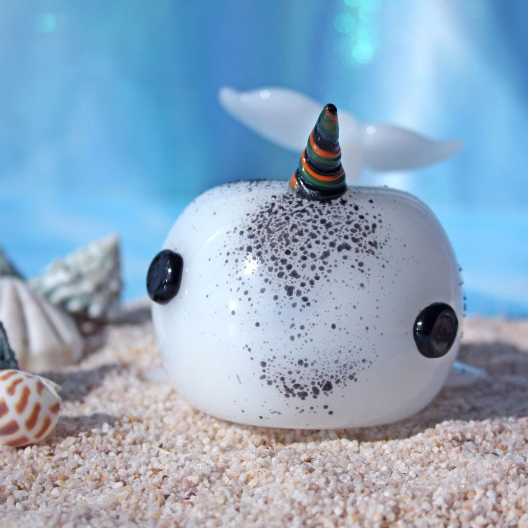 The cutest lil narwhal is made completely of sculpted borosilicate glass. So detailed, he has big eyes and a cute swirly horn!