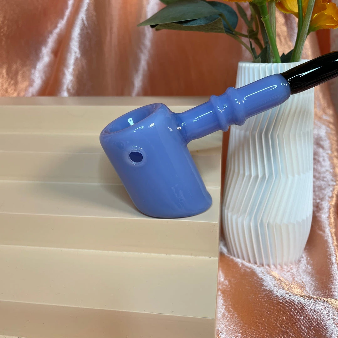 These hammers are made of sturdy borosilicate glass with black accents on the mouthpiece. The carb is on the left hand side. The bowl on these pieces is pretty significantly sized!