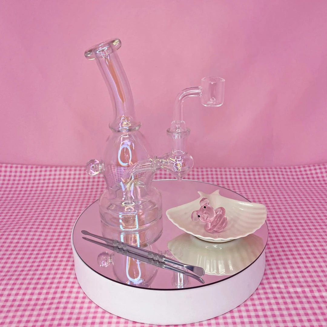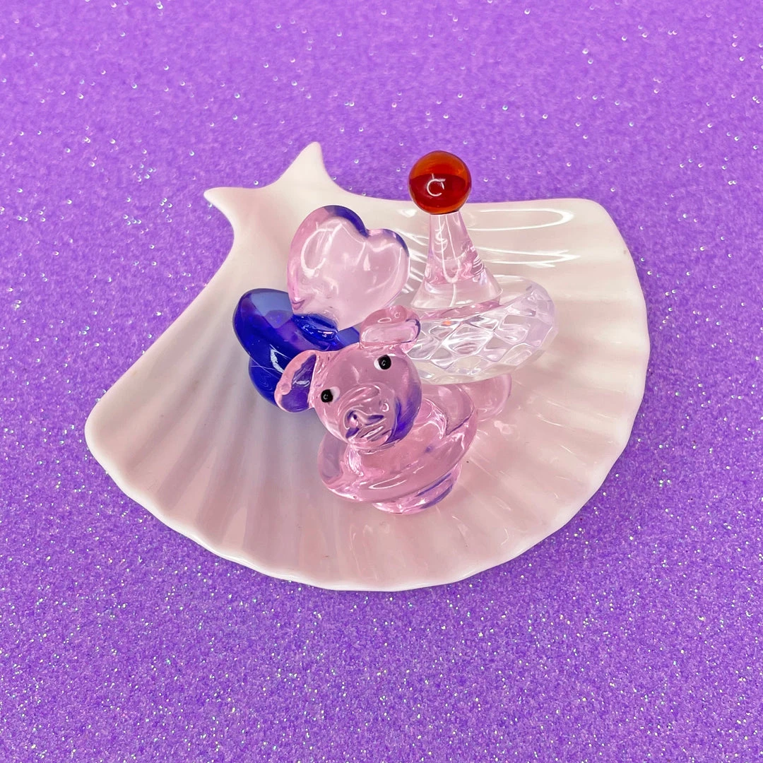 This cutie carb cap is shaped like a pink pig and is made of borosilicate glass.