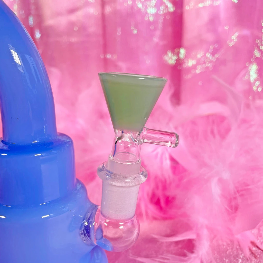 Slide is made of sturdy borosilicate glass. Bowl measures 1″ deep. Male, 14mm, fits most all the bongs and rigs we sell!