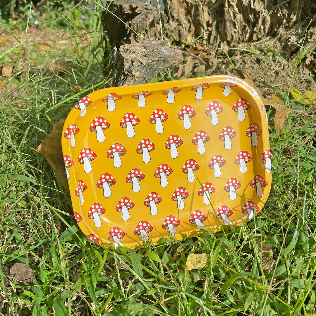 Covered in lil mushrooms, this tray is perf for rolling or as a lil trinket tray around your home.