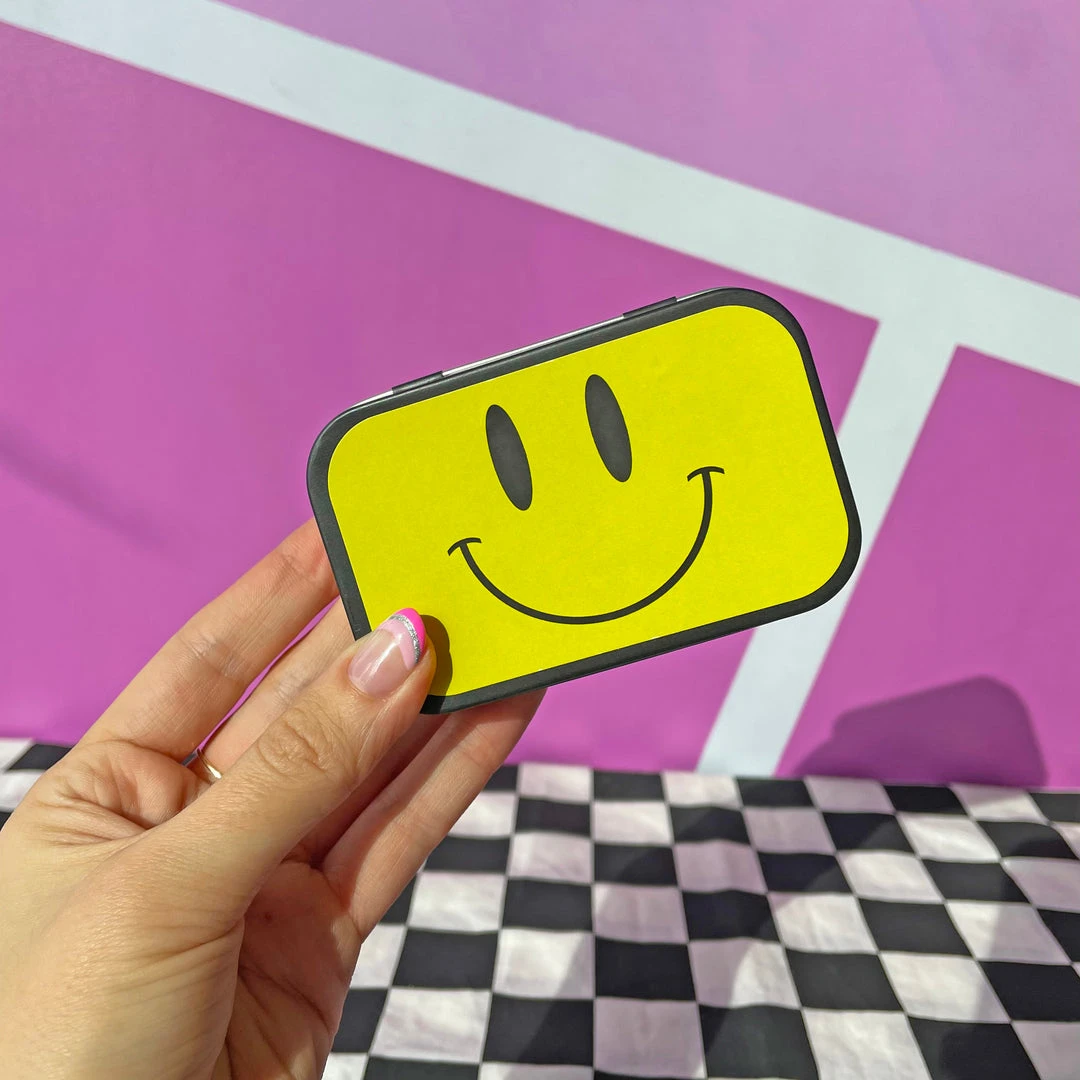 The tins size is 95 x 62 x 20 mm/ 3.75 x 2.45 x 0.8 inches (L x W x H); Thickness is 0.23 mm. So small it can fit in your pocket or the palm of your hand.“