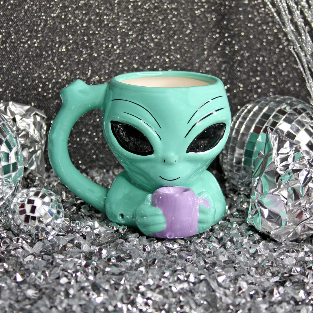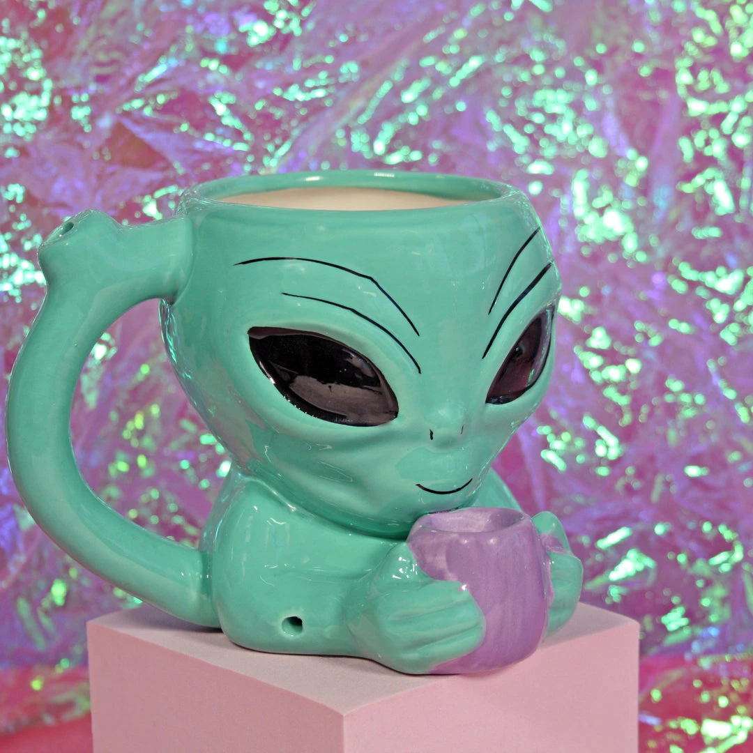 Okay but it’s also a pipe. Pack your herbs in the mug and the top of the handle is the mouthpiece. The carb is on the alien’s arm.